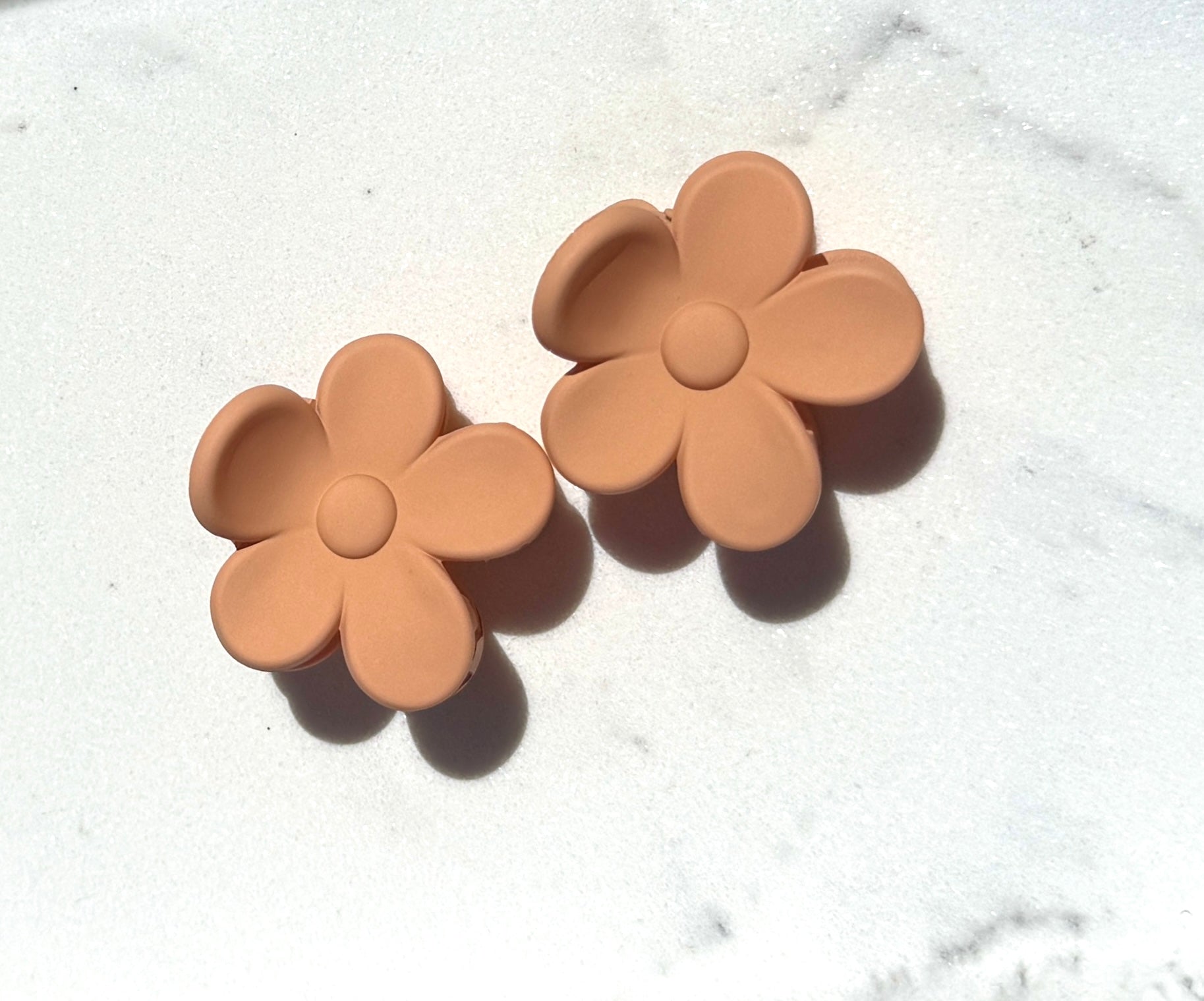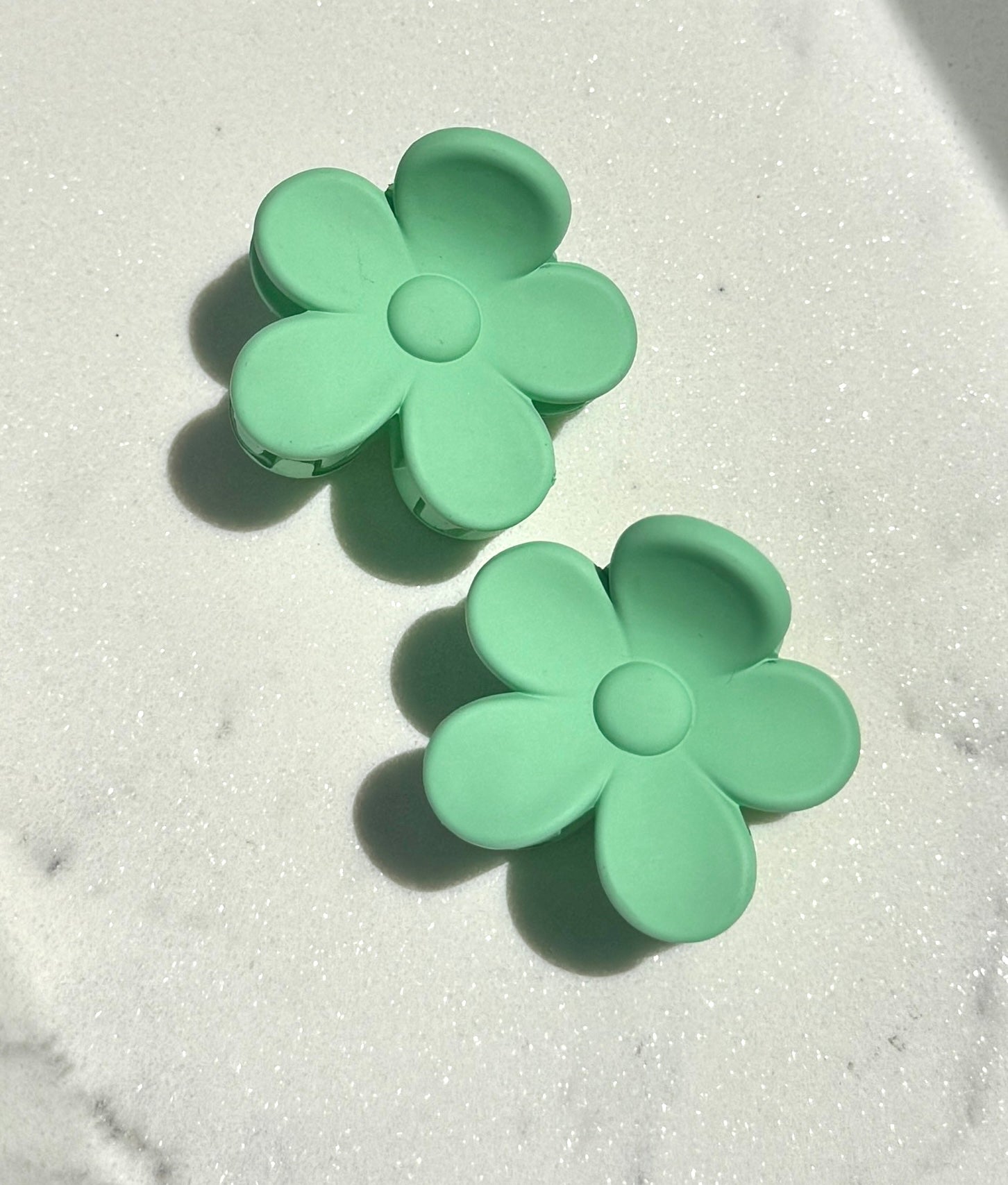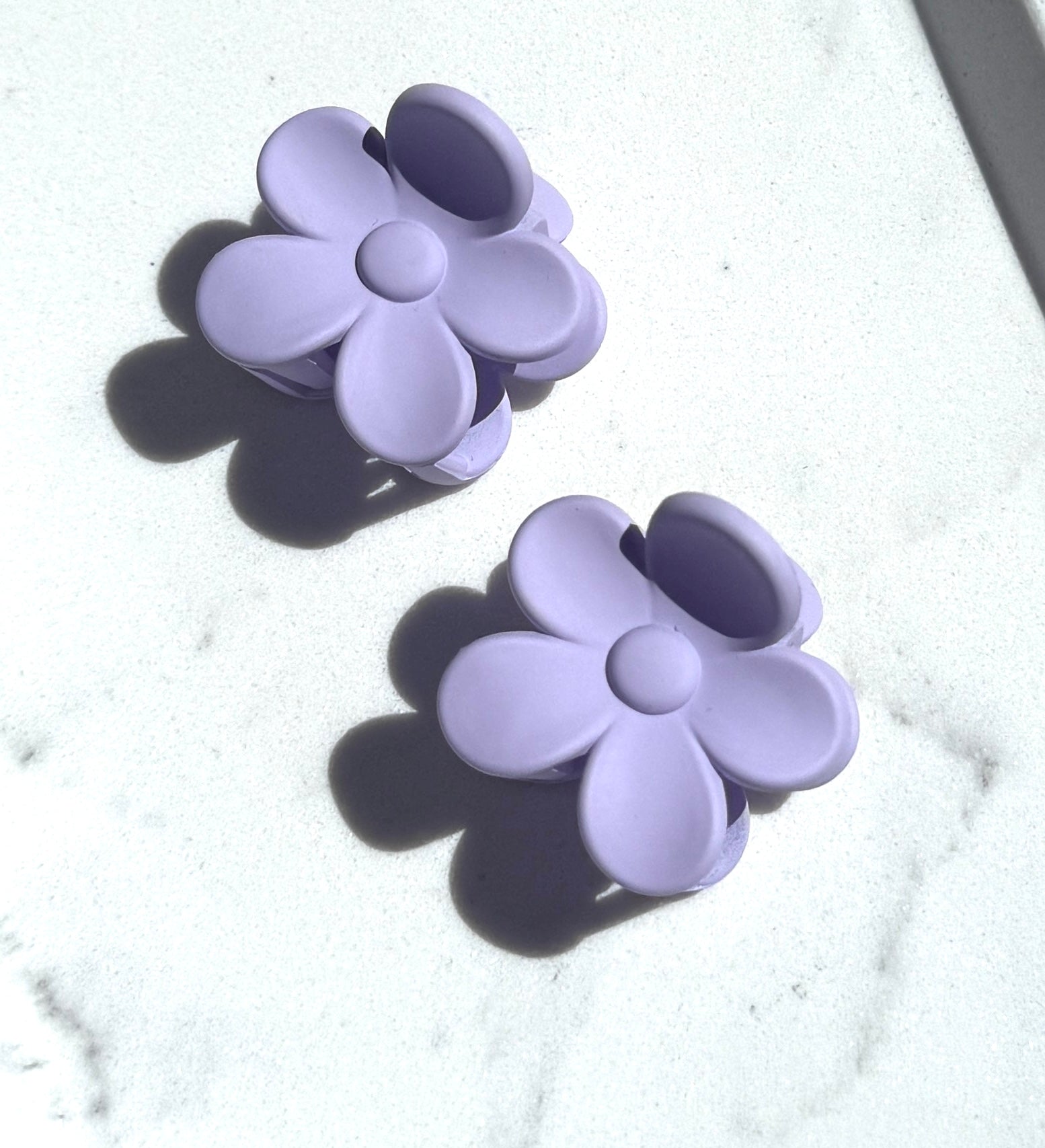 A pair of vibrant and charming kid-size flower claw clips. These cute claw clips are crafted with high-quality materials and feature a smooth matte finish, plus a reliable and secure hold.